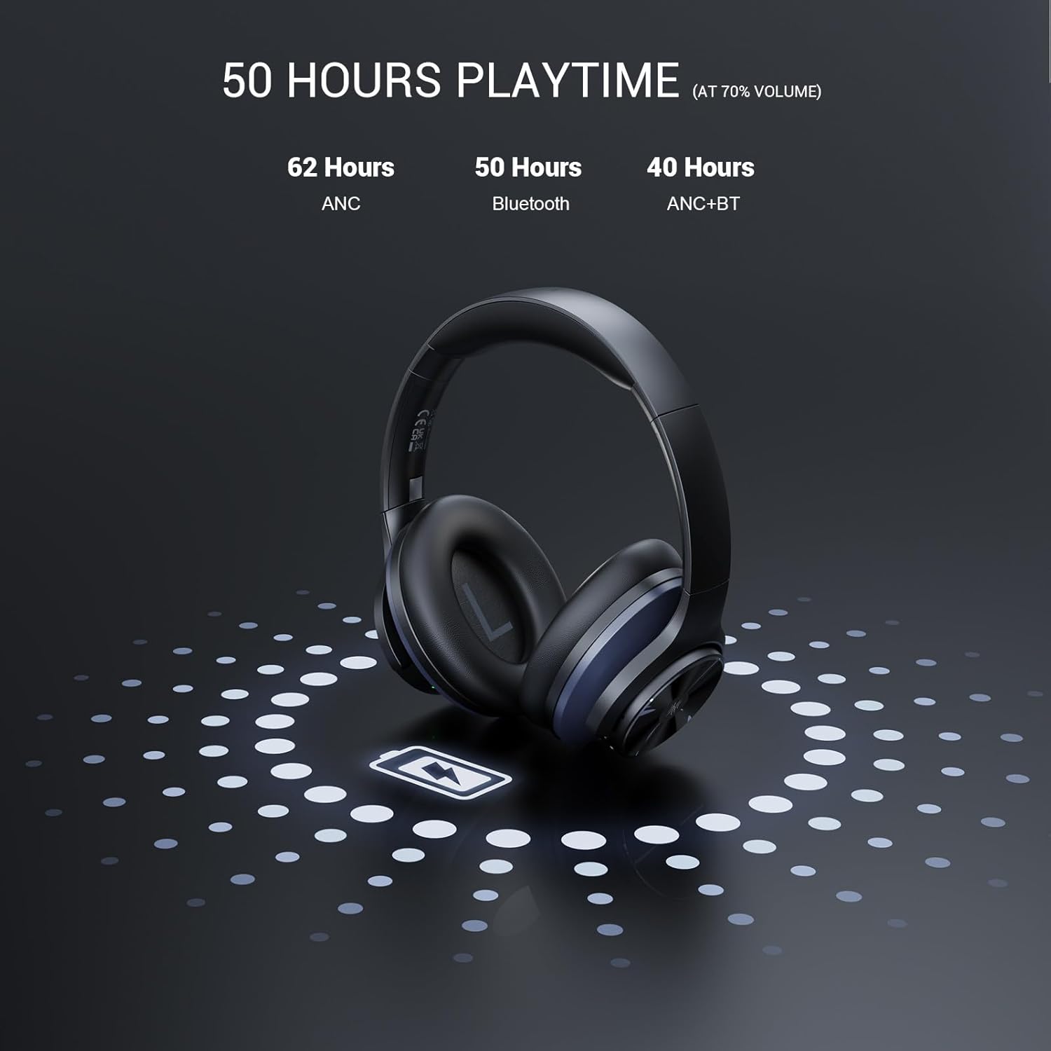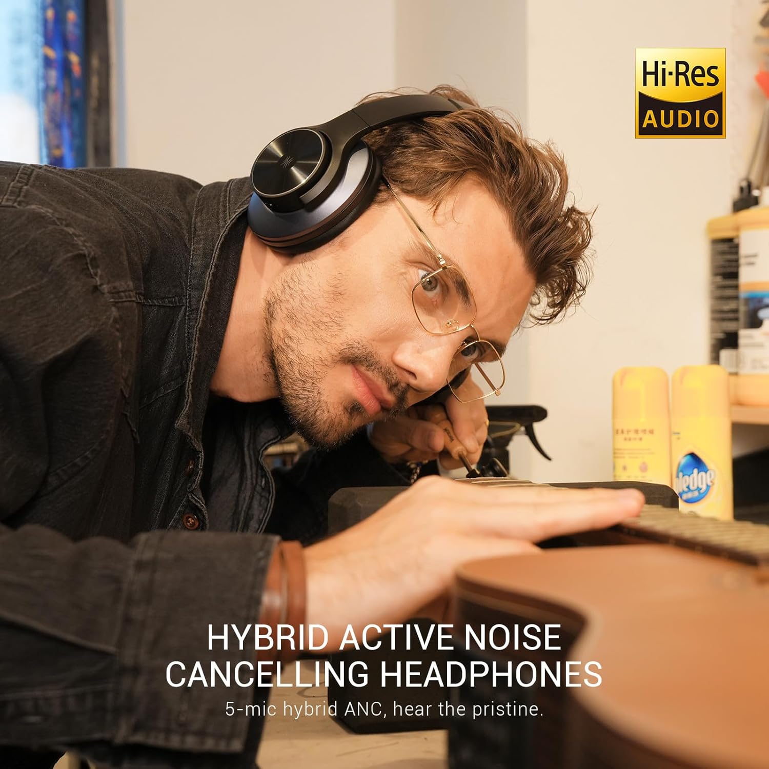 OneOdio A10 Hybrid Active Noise Cancelling Headphones, Wireless Over Ear Bluetooth Headphones, Hi-Res Audio Sound, 50H Long Playtime, Deep Bass, Wireless & Wired 2-in-1, Ideal for Travel Gym Workout